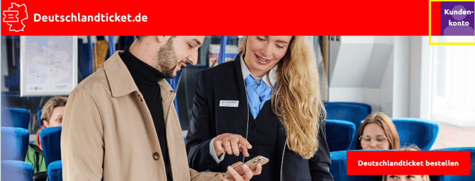 - Um sich im Kundenkonto anzumelden, klickt man auf den lila Button im rechten oberen Bereich der Startseite.
